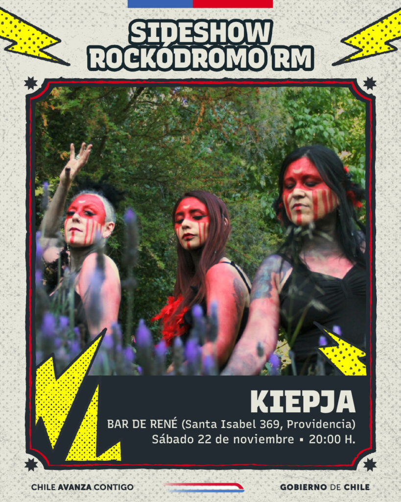 Kiepja es una agrupación de mujeres músicas que nace en Santiago de Chile a fines del 2020, en plena pandemia mundial de covid. La formación actual se conforma a mediados de 2021 quedando así: Graciela Rosanegra en batería y voz, Paulina Cadiz en guitarra y voz y Jav Cartier en bajo y voz. En diciembre de 2022 lanzan su primer disco, ‘MAGA’, grabado íntegramente por Marco Cusato en Estudio Attic Records, mezclado y masterizado por Angeline Bernini, y editado bajo el sello CFA. La música de Kiepja es un viaje entre los sonidos ancestrales, el rock étnico, los rituales mágicos y los cantos de poder, bautizando el estilo como Rock Metal Mantra.